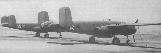 Два главных продукта фирмы North American Aviation: истребитель Р-51 «Mustang» и бомбардировщик В-25 «Mitchell». Оба самолета в стандартном камуфляже, введенном в начале 1941 года. Опознавательные знаки в шести позициях.