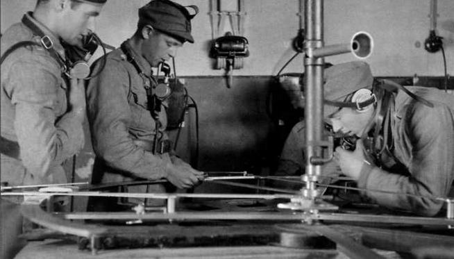 В центре: финские артиллеристы на посту управления огнем 12-дм. башни. 7.07.1942 г.
