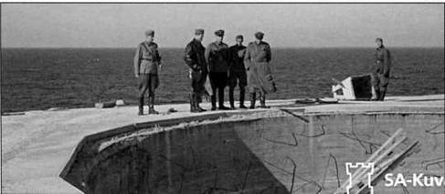 Вверху: полковник Кайнулайнен с группой офицеров осматривают башенный колодец второго башенного блока перед эвакуацией Мякилуото. 20.09.1944 г.
