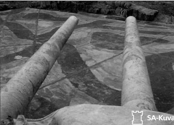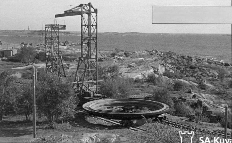 Перед эвакуацией советских войск с Мякилуото стволы первой башни были разрезаны автогеном. Конец октября 1955 г.
