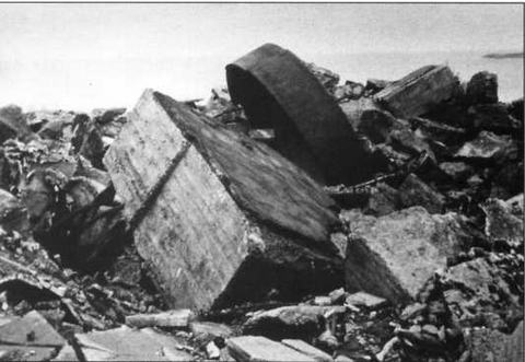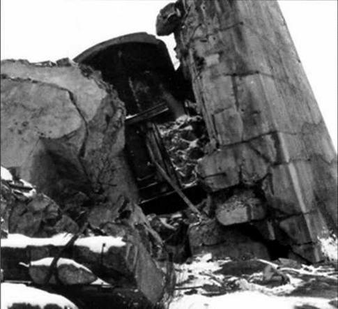 Руины взорванной первой 12-дм. башни. 1957 г.