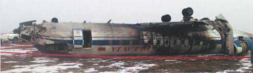 Данные об экипаже. Командир воздушного судна – Шишло Виктор Станиславович, 1958 г. рождения, пилот 2-го класса, стаж работы в гражданской авиации – 25 лет, образование – высшее, в 1983 г. окончил Актюбинское ВЛУ ГА. Общий налет – 8986 ч, в качестве командира воздушного судна Ту-154 – 809 ч, CRJ-100 – 461 ч. Второй пилот – Мухин Александр Викторович, 1964 г. рождения, пилот 3-го класса, стаж работы в гражданской авиации – 22 года, образование – высшее, в 1986 г. окончил Кировоградское ВЛУ ГА. Общий налет – 9445 ч, в качестве 2-го пилота Ту-154 – 520 ч, CRJ-100 – 425 ч. Бортпроводник – Дрозд Ольга Викторовна, 1982 г. рождения, образование – высшее. А.Ф.