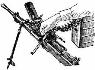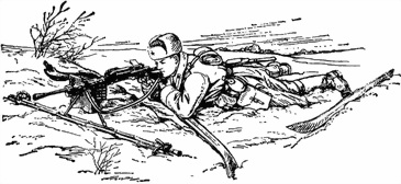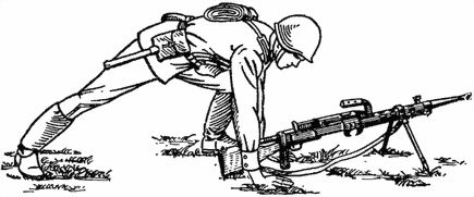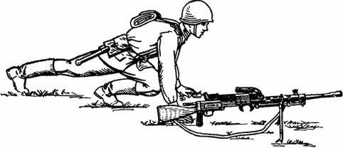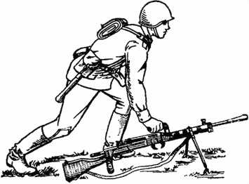 Рис. 50. Установка пулемета на сошку помощником наводчика после переползания