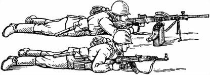 98. Для занятия огневой позиции подается команда, примерно: «Такому-то (пулеметчику такому-то), огневая позиция там-то — к бою». По этой команде пулеметчики занимают огневую позицию, ложатся, применяясь к местности, и изготавливаются к стрельбе.