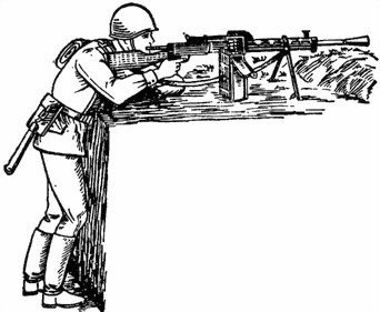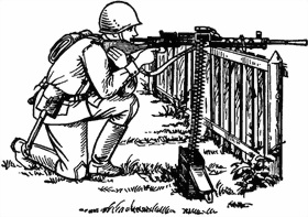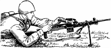 119. Для стрельбы из пулемета по воздушной цели использовать по возможности местные предметы в качестве упора и принять положение для стрельбы, как удобнее (стоя, полусогнувшись, с колена).