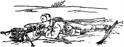 Рис. 66. Стрельба по воздушным целям из траншеи с установкой сошки пулемета на бруствер траншеи