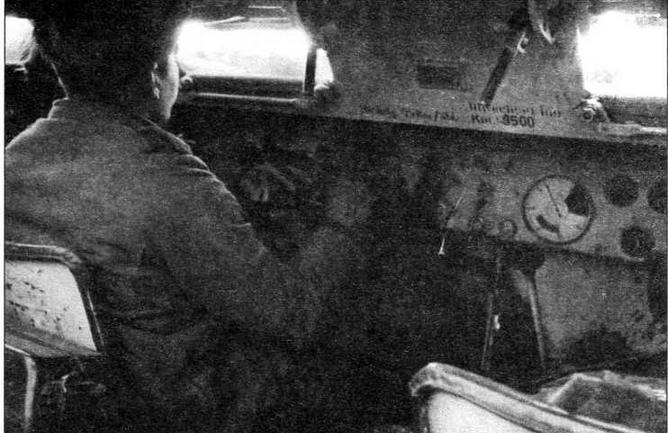 Интерьер отделения управления бронетранспортера Sd.Kfz.251. Обращает на себя внимание обратный наклон рулевого колеса, характерный для всех немецких бронетранспортеров и бронеавтомобилей