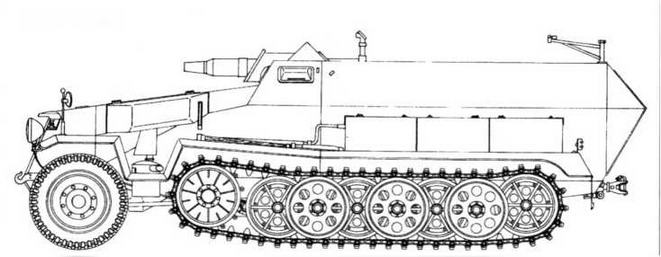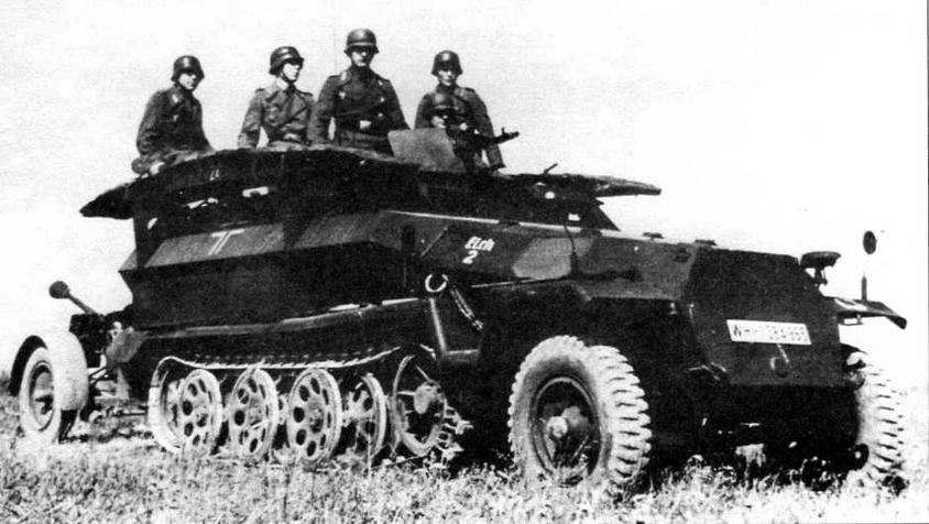 Бронетранспортер Sd.Kfz.25V4— артиллерийский тягач для перевозки боекомплекта и буксировки 105-мм полевой гаубицы Lе FH 18