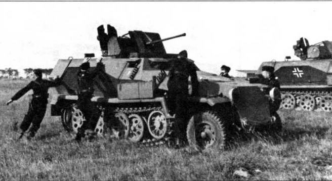 Расчет занимает места в 20-мм самоходной зенитной установке Sd.Kfz.251/17