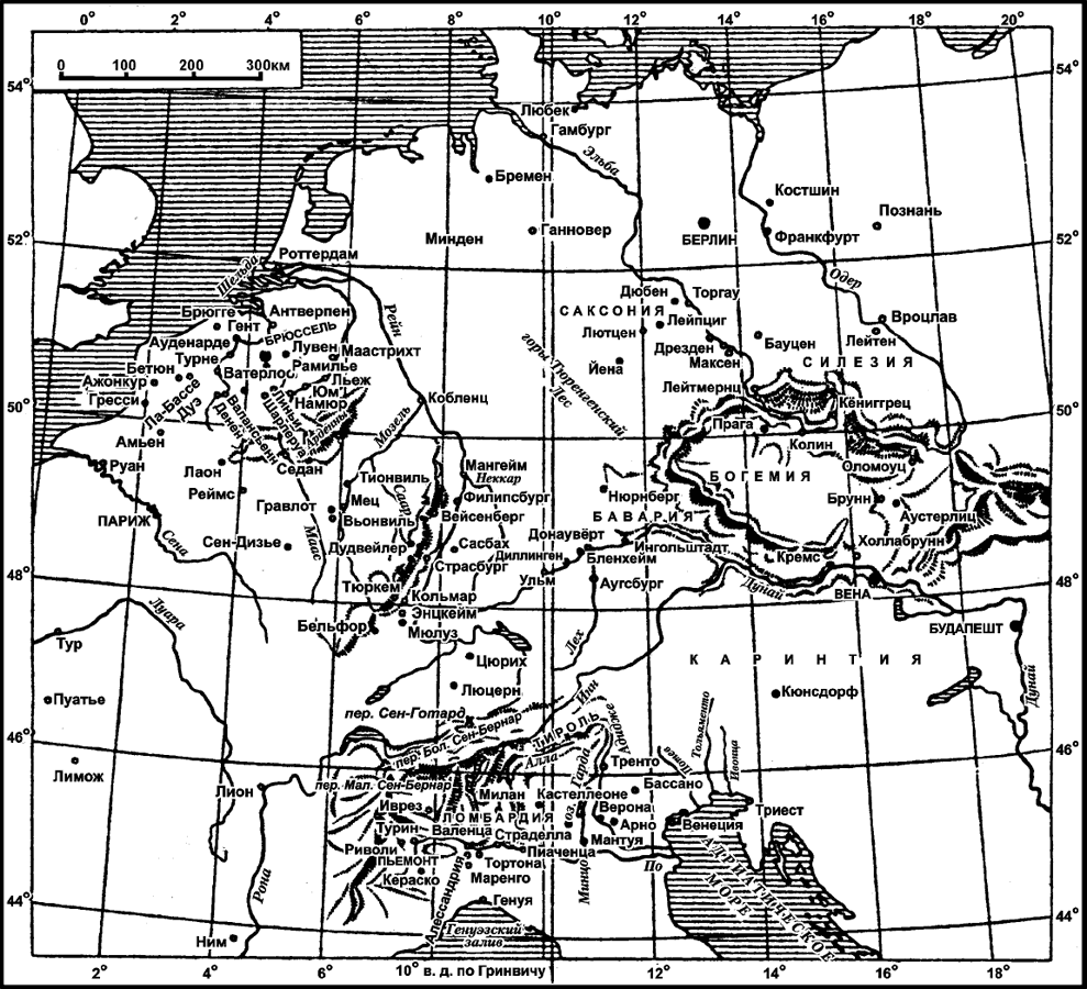 В 1866 г. в целях выигрыша времени Мольтке использовал все имевшиеся в его распоряжении железные дороги для переброски прусских войск на фронт протяженностью свыше 400 км. Его замысел состоял в том, чтобы быстрым концентрическим наступлением через пограничный горный пояс сосредоточить свои армии в центральной части Северной Богемии (см. рис. 6). Однако потеря времени, вызванная нежеланием короля Пруссии оказаться в роли агрессора, расстроила планы Мольтке и вынудила последнего применить непрямые действия, которые не входили в его расчеты. Дело в том, что австрийская армия сумела сосредоточиться и начать наступление раньше Мольтке, лишив его, таким образом, возможности выйти в намеченный район сосредоточения. Помимо этого, прусский кронпринц, считая, что Силезия оказалась в опасности, добился согласия Мольтке на переброску своей армии на юго-восток для охраны этой провинции. Тем самым Мольтке еще больше оторвался со своей армией от остальных армий, но зато занял более выгодную позицию, с которой мог угрожать одновременно флангу и тылу австрийской армии. Педанты извели много чернил, осуждая Мольтке за такое большое рассредоточение сил; в действительности же Мольтке, сам того не подозревая, этим рассредоточением посеял семена своей будущей победы.