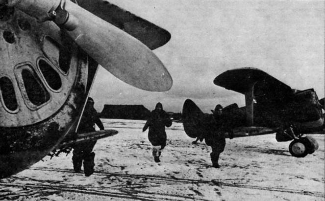 Камуфлированный И-153. Хорошо виден храповик на втулке винта, использовавшийся автостартером "Хакс". Под крылом – пусковые балки PC, створки шасси сняты