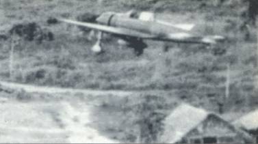 Самолет лейтенанта Чака Хоува возвращается на малой высоте после удара по целям в Симпсон Харборе.