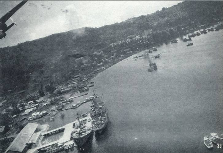 С зажигательными бомбами в этом налете «янки» не повезло еще раз. Крупнокалиберная пуля попала в одну из них, сброшенную 1-м лейтенантом Уильямом Парком из состава 499-я бомбардировочной эскадрильи (ведущий – капитан Тейлор), окутав дымом сразу шестерку «Митчеллов». К счастью для американцев, зажигательные бомбы имели небольшой заряд собственно взрывчатки, но, вместо штурмовки зениток на горе Сульфур Крик, лейтенанту пришлось возвращаться на изрешеченной осколками машине домой. Его сбившиеся с курса однополчане, впрочем, все же нашли для себя вполне подходящие цели на гидроаэродроме Матупи, где покачивались на якорях 15 гидроистребителей A6M2-N. К тому моменту, когда эскадрилья В-25 повернула на базу, не менее четырех из них превратились в обломки.