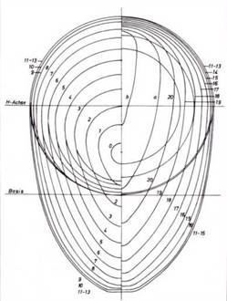 Схема расположения шпангоутов к конструкции подлодки И'К 202.