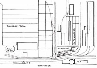 Место постройки подлодок V 792/793 на верфи Блом и Фосс.
