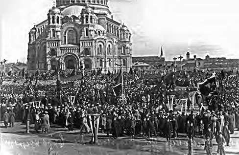 Отпевание в Морском соборе солдат и матросов, погибших 1 марта 1917 г. Их похоронили на Якорной площади. 7 марта 1917 г