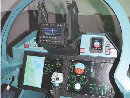 Многофункциональные индикаторы МФИ-35 со встроенным дисплейным процессором имеют размер 9х12 дюймов (диагональ – 15 дюймов) и разрешение 1400x1050 пикселей. Они предназначены для приема, обработки и отображения в мультиоконном режиме графической, цифробуквенной и символьной информации, отображения телевизионной информации от бортовых телевизионных датчиков с наложением на нее цифробуквенной и символьной синтезированной информации, а также формирования и выдачи видеосигнала в цифровом виде в систему видеорегистрации. Многофункциональный пульт со встроенным дисплейным процессором предназначен для отображения необходимой информации и выдачи команд путем нажатия кнопок на обрамлении на всех этапах полета. Коллиматорный авиационный индикатор ИКШ-1М со встроенным процессором предназначен для обеспечения наблюдения на фоне закабинного пространства коллиматорного изображения информации, формируемой в соответствии с управляющими сигналами. Он имеет поле зрения 20х30°.