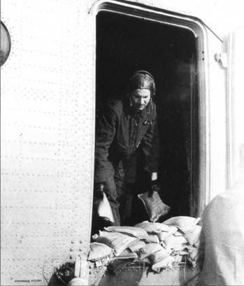 Выхожу на боевой курс, напоминаю бортовому технику о подсоединении страховочного пояса и приступаю к гашению поступательной скорости до 60-50 км/ч. При достижении скорости порядка 100 км/ч подаю команду: «Приготовиться к сбросу». По этой команде бортовой техник уходит со своего рабочего места и изготавливается к сбросу груза… На скорости 70-60 км/ч по команде «Сброс!» он самостоятельно прицеливается, и 2-3 мешка летят вниз; после чего докладывает: «Груз сброшен». Приступаю к разгону поступательной скорости и выполнению нового захода на цель. Здесь важное значение приобретает координация и плавность управления для успешной совместной работы летчика и оператора; ибо резкая работа педалями может привести к рысканью вертолета по курсу и возможному выбрасыванию оператора из грузовой кабины под действием центробежных сил».