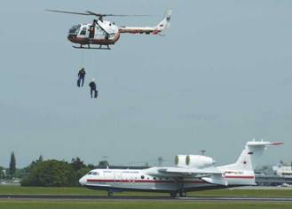 Во время ILA 2006 МЧС показало имитацию спасения двух пострадавших с помощью вертолета Bo105, а также пожаротушения амфибией Бе-200ЧС.