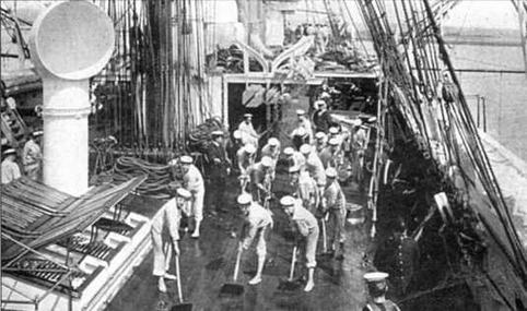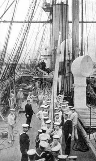 Вид на верхнюю палубу "Каллиопы" с установленными на ней 5-дюймовыми орудиями