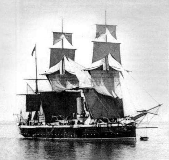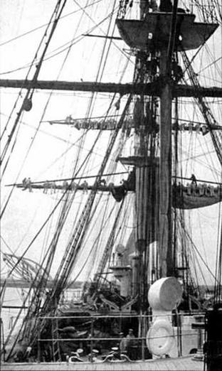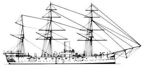 Характеристики артиллерии 6-in Mk.IV 5-in Mk.ll Длина ствола, мм/клб. 3962 / 26 3175/25 Вес орудия с затвором, т 5 1,93 Вес снаряда, кг 45,36 22,68 Начальная скорость снаряда, м/с 597 533 Дальность стрельбы, м 9100 8000Корветы имели парусное вооружение трехмачтового барка. Высота мачт от верхней палубы до клотика составляла: фок - 40,85 м, грот -41,5м, бизань - 34,7 м. Бушприт и углетарь выполнялись убирающимися внутрь корпуса на случай тарана.