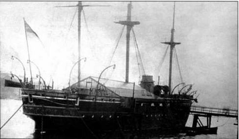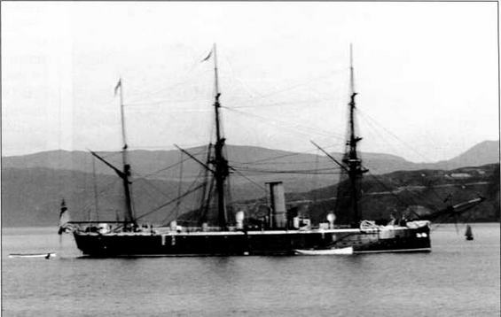 "Каллиопа" в светлой окраске во время службы на Китайской станции. На заднем плане войсковой транспорт "Джамна"