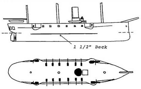 Корабли имели две сплошные палубы - верхнюю и нижнюю, а также закрытые полубак и полуют. При нормальной нагрузке нижняя палуба находилась в двух футах выше ватерлинии. В полуюте размещались каюты командира, старшего офицера и штурмана, а перед ним располагался двойной ручной штурвал. Пространство под полубаком использовалось для работы с якорями и размещения умывальников и гальюна. Средняя часть верхней палубы отводилось под артиллерию. Тем самым батарея была существенно короче, чем на классических парусных кораблях, и содержала меньшее количество орудий, хотя и не шла ни в какое сравнение по их разрушительной мощи.