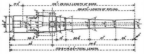 Схематический чертеж 6-дюймовой казнозарядной пушки Mk. IV