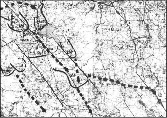 Сразу после занятия Спас-Коркодино 7-я тд сформировала передовой отряд, состоящий из роты танков и роты разведывательного батальона, который двинулся через Мишнево на Ивлево, занял этот населенный пункт и высоту 222.9 рядом с ним. Поскольку наши части здесь так и не появились, немцам никто не препятствовал. За их передовыми подразделениями следовал мотострелковый батальон, который закрепил достигнутый успех. Одновременно немцы выслали вперед две разведывательные группы. Вследствие наступившей темноты они достигли только линии Аревское – Пруды. В лесу в километре северо-восточнее Ивлево ими были встречены заграждения из деревьев, а на юге разведка наткнулась на многочисленные минные поля. Попытка найти через них проход увенчалась успехом только частично[108]. Однако, поскольку никаких советских войск впереди обнаружено не было, решение этой проблемы было только вопросом нескольких часов. Так окончательно сформировалась брешь между двумя нашими армиями – 16-й и 30-й.