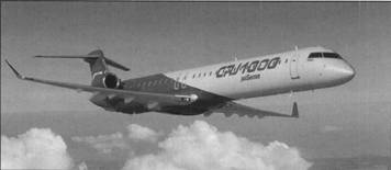 В середине февраля 2007 г. совет директоров корпорации «Бомбардье» разрешип ее авиационно-космическо- му отделению официально приступить к программе разработки 100-местно- го регионального реактивного самолета CRJ1000 (см. рисунок). Впервые проект такого самолета (под обозначением CRJ900X) стал обсуждаться в начале 2006 г., после того как было принято решение прекратить разработку ближне- и среднемагистральных самолетов «Серия С», рассчитанных на перевозку 110 – 130 пассажиров и предназначенных для замены старых самолетов Макдоннелл-Дуглас DC-9 и MD-80.