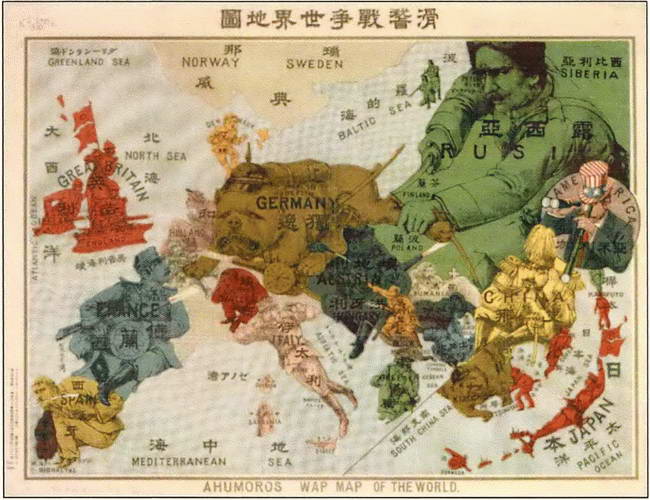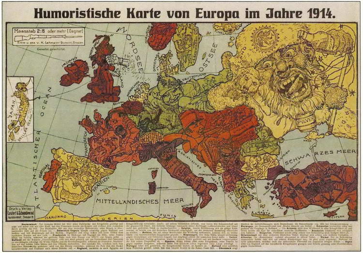 Немецкая юмористическая карта Европы. 1914