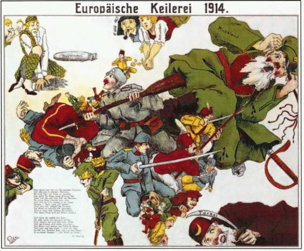 «Европейская драка». Немецкая юмористическая карта Европы. 1914