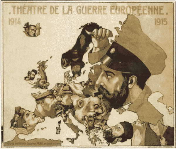 «Театр европейской войны». Французская юмористическая карта Европы. 1915