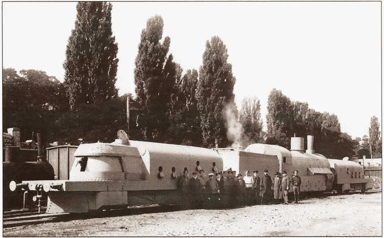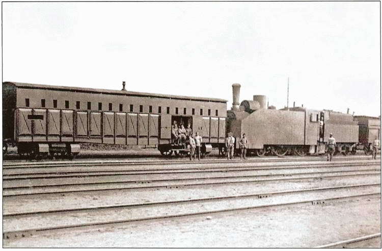Общий вид типового бронепоезда 2-й Заамурской железнодорожной бригады «Хунхуз», построенного в Киевских мастерских. 1 сентября 1915 г.
