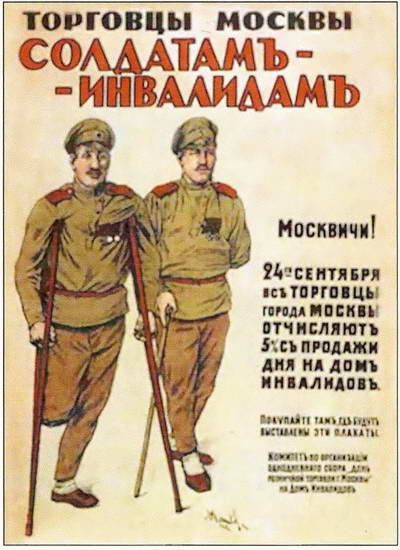 Плакат «Торговцы Москвы солдатам-инвалидам». Художник Д.И. Мельников. 1915