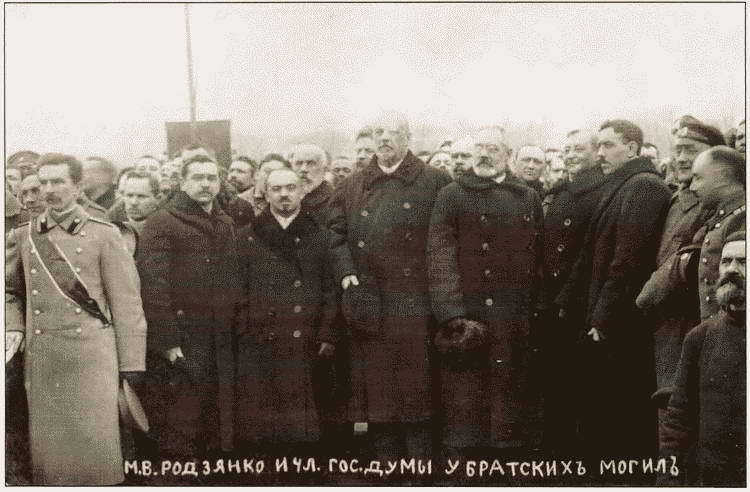 Депутаты на Марсовом поле. В первом ряду третий слева — М.А. Аджемов, четвертый — М.В. Родзянко, пятый — А.И. Гучков. 23 марта 1917 г.