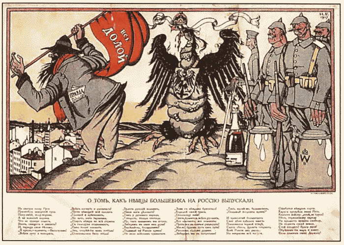 Карикатура «Как немцы большевика на Россию выпускали». Художник И. Билибин. 1917