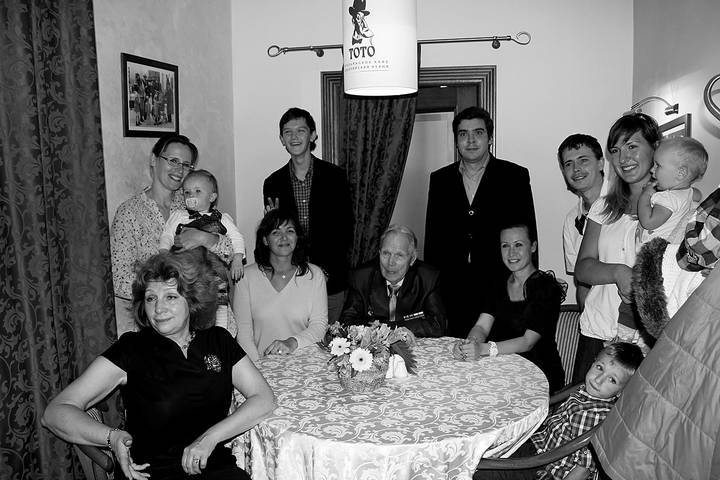 Ну и, наконец, на мой взгляд, главное достижение всей его жизни – он сумел воспитать и объединить целый клан потомков Бурковых. Достаточно взглянуть на фотографии, сделанные в день празднования его 85-летия: счастливый юбиляр, его любимая и преданная дочь Лариса, или, как мы её всегда называли, Ларочка, его внуки и правнуки.