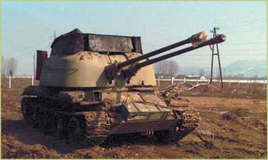 ЗСУ-57-2 армии Республики Сербской. Босния и Герцеговина, февраль 1996 года. Машина использовалась как обычная САУ, поэтому боевое отделение закрыто сверху.