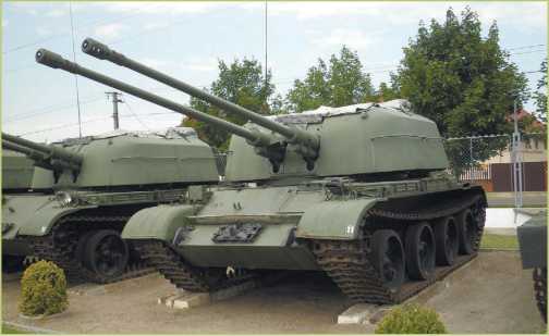 ЗСУ-57-2 в одном из польских военных музеев. Стволы 57-мм спаренной автоматической пушки подняты на максимальный угол возвышения.
