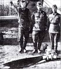 Лейтенант А. Катрич (в центре) после воздушного тарана 11 августа 1941 г. с летчиками своего звена. На переднем плане – поврежденный винт его самолета