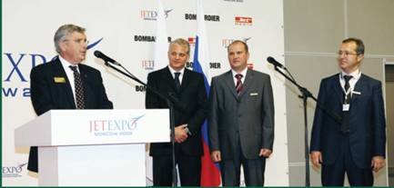 На церемонии открытия Jet Expo 2008 выступили старший вице-президент «Цессна Эркрафт» Роджер Уайт и директор по продажам в России и странах СНГ «Бомбардье Бизнес Эркрафт» Кристоф Дегумуа.