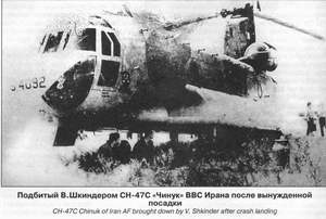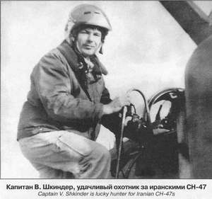 В 6.52 Милославский поднял второй истребитель, пилотируемый к-ном В. И. Шкин-дером. Вскоре летчик доложил, что вертолеты опознаны, после чего получил команду: «Атакуйте!». «Чинуки» шли парами на юго-восток вдоль Каракумского канала, но, когда иранцы обнаружили, что их преследует истребитель, они тут же развернулись и стали уходить к горам, в сторону границы. Получив команду на уничтожение цели, Шкиндер выпустил по ближайшему СН-47 две ракеты Р-60. Тут же на КП последовал его доклад: «Первый уничтожил…». Через 8 секунд он уточнил: «Первый упал на землю, горит. Второй уходит к границе. До границы 5 км, постараюсь уничтожить второй вертолет, сейчас доверну». Милославский, чувствуя, что пилот вошел в боевой азарт, предупредил его: «Близко не подходи». В ответ последовало взволнованное сообщение: «Второй дымит, полетели куски от него, пошел к границе…». На запрос КП: «Чем работали?», летчик ответил: «Пушкой» (расход снарядов составил 72 штуки). С момента вылета прошло всего 5 мин 26 с.
