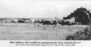 В 1991 г. все летчики освоили дневные полеты, а 4-5 человек летали и в ночное время. Эскадрильи были признаны боеготовыми и приступили к несению боевого дежурства. Уже после распада СССР прошли В 1990 г. 156-й АПИБ получил новые МиГ-29, но продолжал эксплуатировать некоторое количество Су-17. В таком смешанном составе он и встретил декабрь 1991 г. До 1993 г. полк и другие части, о которых речь шла в этой статье, входили в состав ВВС РФ. Затем они разделили судьбу многих российских полков, расположенных за пределами своей страны: сами части были расформированы, российские авиаторы убыли на родину, а вся авиатехника перешла вооруженным силам государств, образовавшихся из бывших советских республик. При этом базировавшиеся в Ак-Тепе и Мары части стали отдельными смешанными авиаполками нейтрального Туркменистана. Они получили на вооружение самолеты разных типов: МиГ-23, МиГ-25, МиГ-29 и Су-17. Недавно там появились Су-25, четверка которых была показана на параде в декабре 1999 г. Именно туда прибывают служить молодые авиаторы туркменских ВВС, недавно окончившие украинские авиационные вузы.