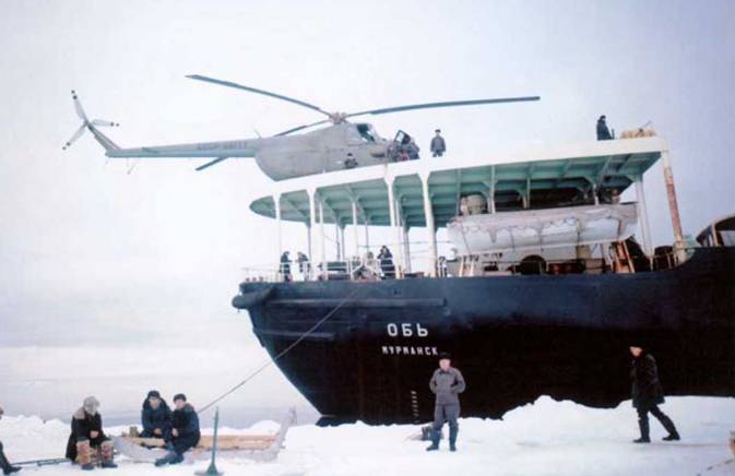 Ми-4 на вертолетной площадке дизель- электрохода «Обь»