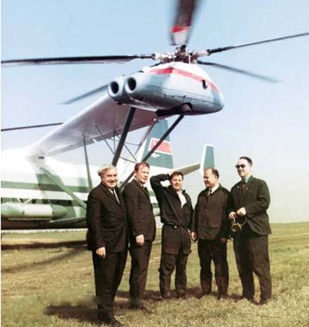 Экипаж ВЛ. Колошенко после выполнения очередного испытательного полета на вертолете В-12