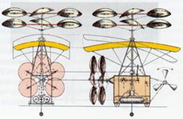 На рубеже XIX и XX веков появился ряд проектов с основательно продуманной компоновкой, конструкцией узлов и деталей, упрощенными прочностными, аэродинамическими и энергетическими расчетами. Значительно продвинулись изобретатели винтокрылых машин в области развития представлен и й о проблемах устойчивости и управляемости. Речь идет о проектах горного инженера С.М. Кенигсберга (1893 г.), сподвижника Н.Е Жуковского С.С. Неждановского (1894-1896 гг.), служащего Главного инженерного управления русской армии инженера-механика JI. д'Андре (1895 г.), мастера Сестрорецкого оружейного завода В.П. Коновалова (1895 г.), отставного полковника II.М. Янушева из Ташкента (1902 г.), учителя А.В. Яблонева (1902 г.) из Ряжска, главного инженера Путиловского завода П.П. Липковского (1902-1904 гг.) и других.