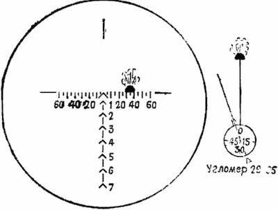 Величина бокового отклонения разрыва от цели (точки прицеливания) определяется в делениях угломера.