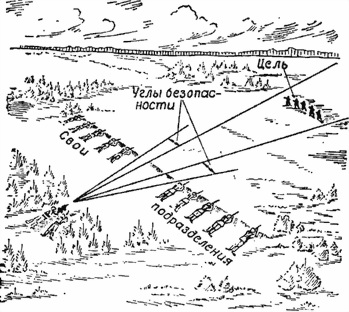 Рис. 54. Углы безопасности при стрельбе в промежутки своих подразделений