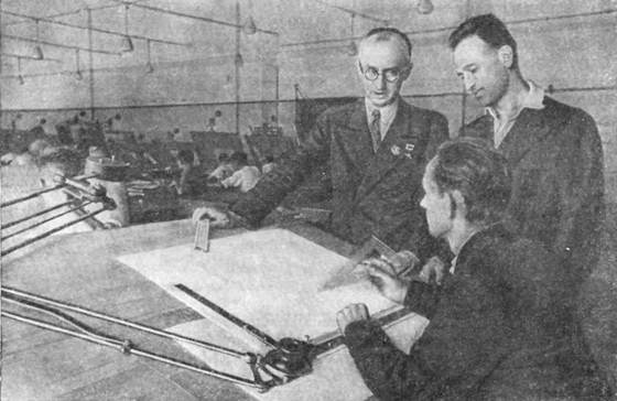 В. Я. Климов (слева) в конструкторском бюро.